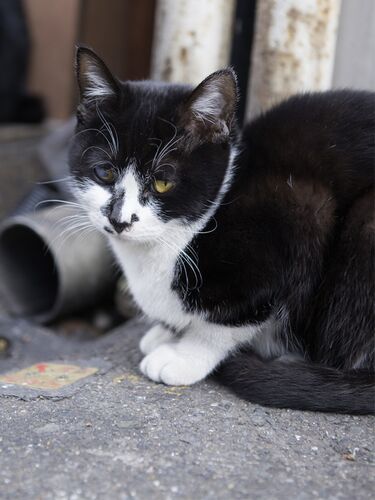 Nikon D600 / AF-S NIKKOR 24-70mm f/2.8G ED 70mm F4 1/100 ISO200福岡市の中洲は九州最大の歓楽街。 雑然とした街も朝は静寂を取り戻します。 そんな片隅に強く生きるネコたちがいました。撮影地:福岡 中洲Nikon デジタル一眼レフカメラ D600 ボディー D6…