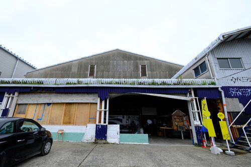 改装中の電気屋さん「パナックけいてい」の敷地を利用した会場。 有馬かおるとXYZ Collective、パープルーム、犬山キワマリ荘、水戸キワマリ荘のグループ展示。 有馬さんは石巻に移住して作品制作をしています。こちらの作品はアートフェス終了後も継続展示…